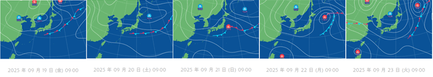 秋雨前線が本州を通過しているため、本日17日、明日18日は雨模様の山形・庄内。週末から秋分の日にかけての週末は、E→SE→N→NE、と時計回りで風向が変わります。Eに弱いスポット、Eに強いスポット、見極分けて開催予定です。4-5日間のペースで風向が変わるため、多少のウネリが予想されます。最新の天気図や海況情報の変化に十分ご注意ください。