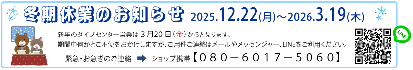 一年が経つのは早いもので、いよいよ今週末21日(日)がダイブセンターの最終営業日となります。