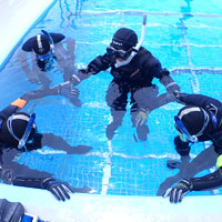 2段階水深、最深部3mのダイビングプールを使ってダイブガイドに必要なワークショップを行います
