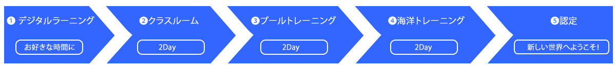 ずっと使えるデジタル教材(登録・トレーニングレコード含)+ワークショップ+プール講習&実習・評価+海洋実習・評価+ダイブガイド認定