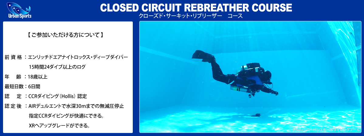 登録・CCR教材+レクチャールーム知識 + コンフィグレーションドリル + プール講習 + 海洋講習 +ベイルアウトガスシリンダー
