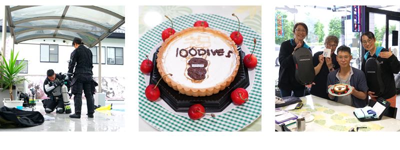 そいったことで、当然と言えば当然だが、プールダイブで「記念(キリ番)ダイブ」のお客さまが出てくる。まさに本日のお客さまがそうなのだ。アーバンスポーツでは敬意を持ってお祝いをさせてもらっている。100ダイブ記念おめでとうございます!