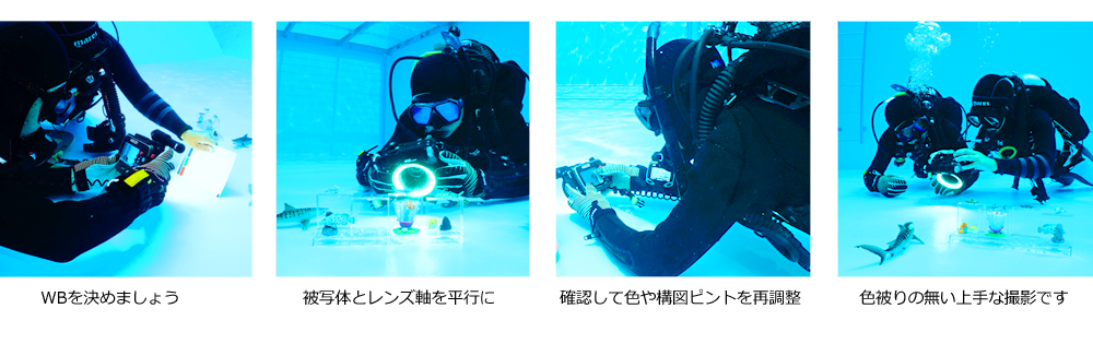 レクチャールームで2~3時間、撮影のコツや設定を学び、そのままプールで実践。マニュアルだけ購入するのもOK。自分のペースで学びたい方にもぴったりだ。