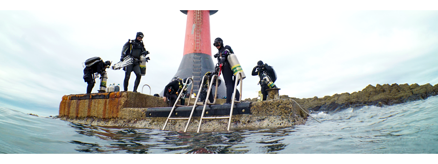 とはいえ、水中は見事な“庄内グリーン”。グリーンになるのは、水中生物たちに必要な栄養素が豊富に含まれている証拠だと、誰かが言っていた。水中生物にとってはグリーンが良く、私たちダイバーにとってはブルーが嬉しい。なかなか難しい引き合いだ。