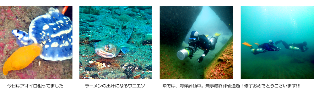 お隣では、サイドマウントダイバーコースの最終海洋実習が行われ、無事に最終評価をクリア。今年4人目、女性では初となる認定ダイバーが誕生しました。おめでとうございます!