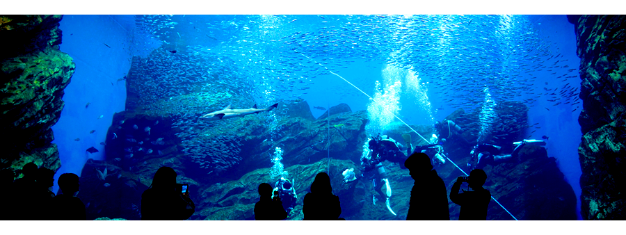 事前に魚の見分け方を学んでから大水槽に入ることで、観察の効果がぐっと高まりました。中には「アカウミガメとアオウミガメ、そしてタイマイの見分け方を知りたい」というリクエストをくださったお客さまもいらっしゃいました。水深も広さもある大水槽に入ると、想像を超えるイワシの群れが目の前に広がり、エイやサメ、その間を泳ぐ多彩な魚たちが次々と姿を見せてくれます。時折現れるイワシのトルネードには、思わず息をのむほどの迫力がありました。