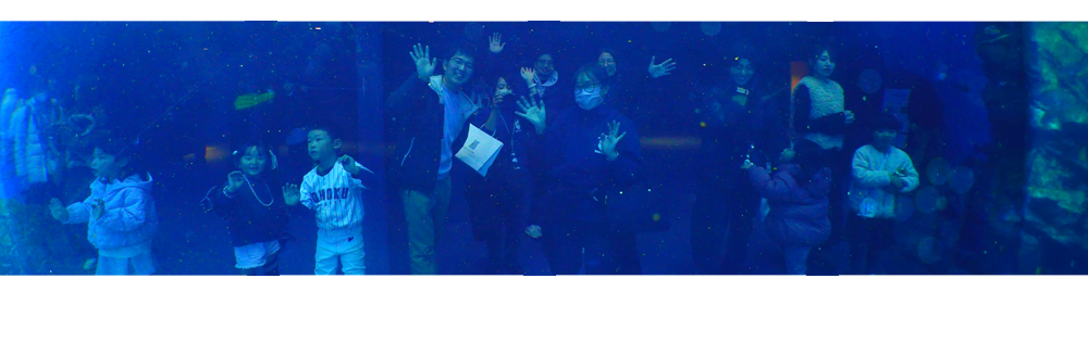 当日は水槽を貸し切りにし、前半組と後半組に分かれて実施。水槽の中から楽しむ組と、外から観察する組とで、陸上目線と水中目線の両方を満喫しました。意外だったのは、水槽の中からガラス越しに観客の皆さんを眺める体験。水族館は「人間が生物を観る場所」だと思っていましたが、実は水槽の中から「彼らも人間を観ている」のだと気づかされ、驚きと新鮮な発見がありました。